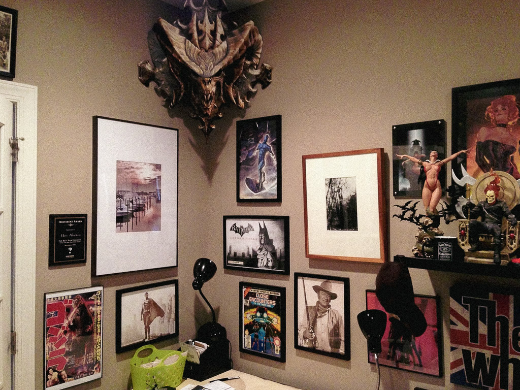 Some photos of my home office, circa 2013. Pretty decent start, but it's come a long way since.