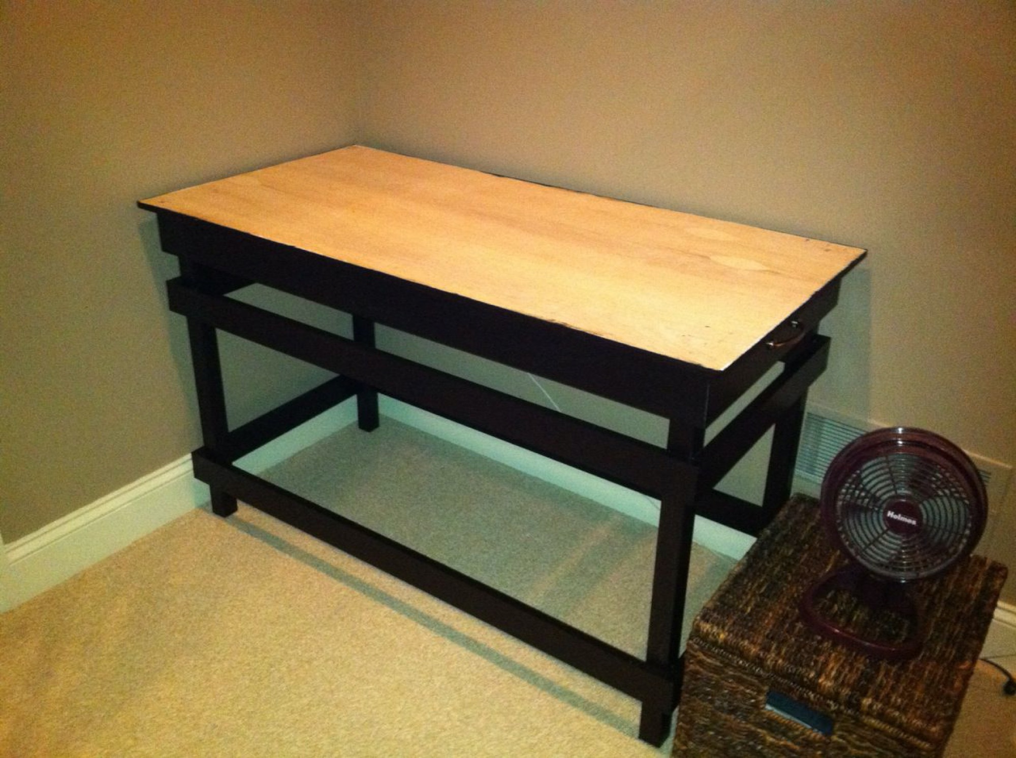 Six months later and I've finally finished this benchwork and got it in my office. It was definitely not due to the complexity of the project, but it had everything to do with finding the time to finish up the remaining steps. I was especially mindful of the crazy humidity this summer with regards to painting it. I've had a couple experiences in the past with painting wood projects during humid weather and the piece seems to have a forever 'tackiness' to the touch - something I definitely didn't want on this piece.