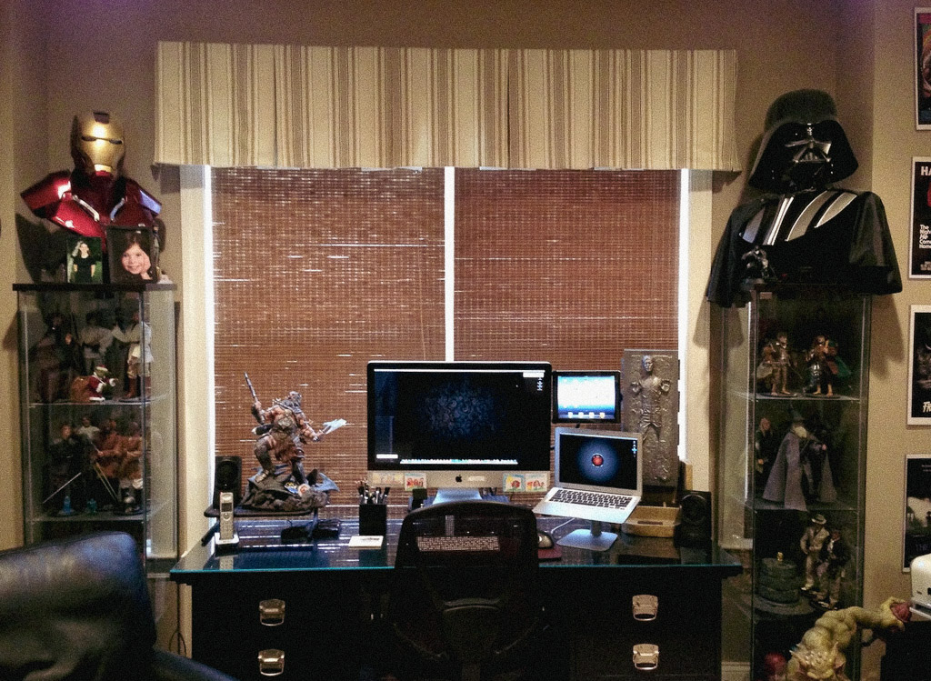 Some photos of my home office, circa 2013. Pretty decent start, but it's come a long way since.
