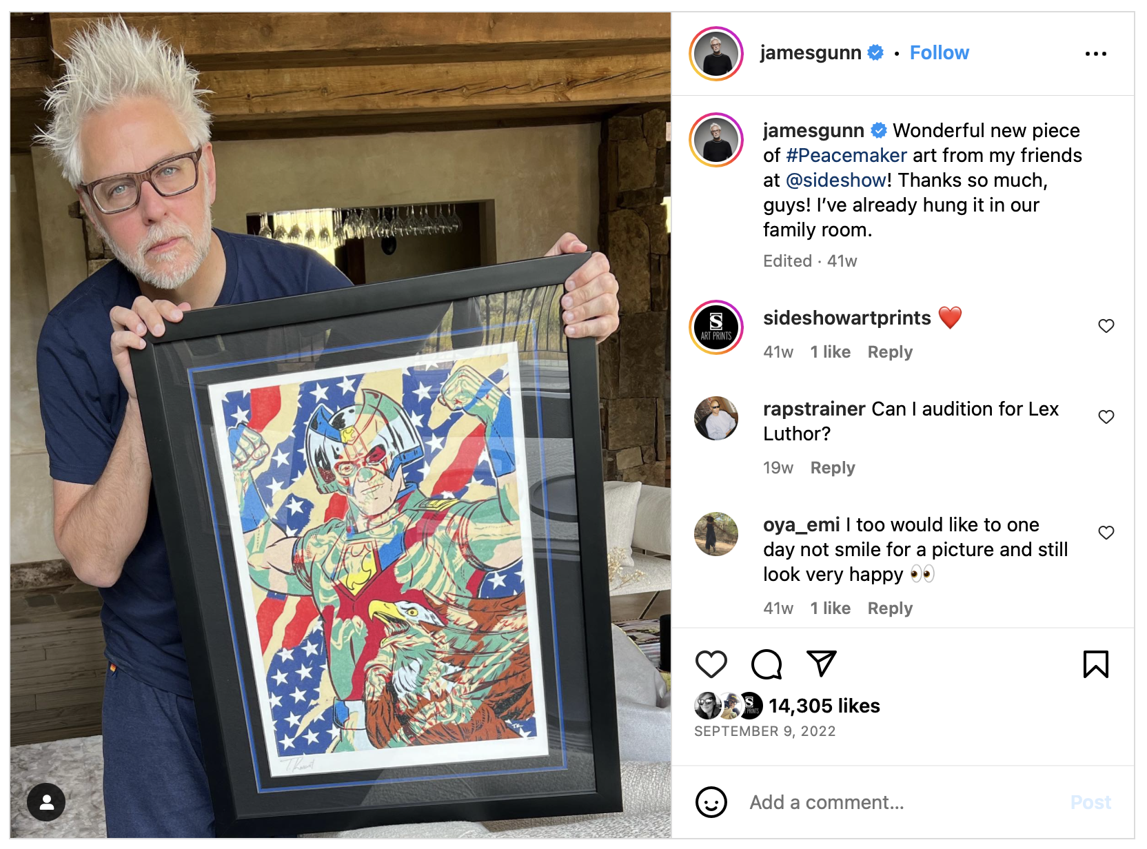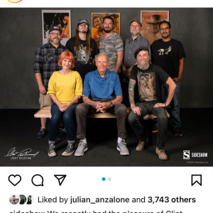 This post showcases just a handful of the dozens and dozens of social media posts and a smattering of other photos over the last 20 years: Clint Eastwood(Man with No Name, Preacher, Dirty Harry), Mark Hamill (Luke Skywalker and The Joker), Keanu Reeves (Jon Wick), Jason Mamoa (Aquaman), Laurence Fishburne (Matrix and Predators), Jon Bautista (Drax), Grogu on Monday Night Football (and NASA's control center), Fluffy, James Gunn (Peacemaker), Jon Favreau (The Mandalorian), Muvico Theater Display.